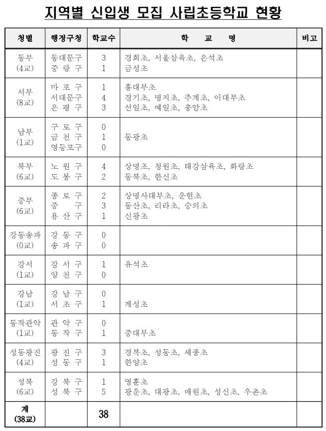 서울 사립초 현황