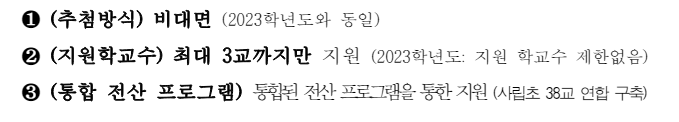 코로나 이후로 2024년 전형부터 3개교까지만 신청할 수 있도록 바뀌어서